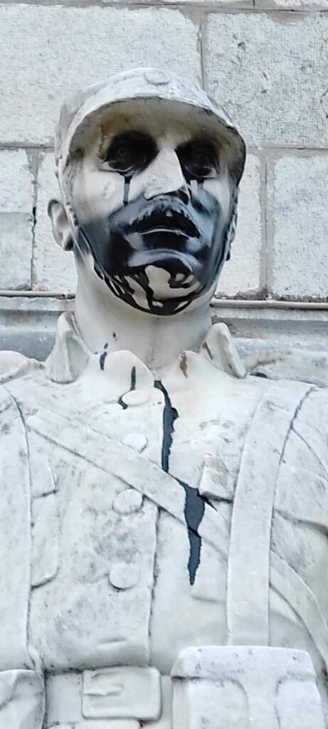 Αυτή τη φορά, άγνωστος ή άγνωστοι, έριξαν μαύρη μπογιά στο πρόσωπο τους αγάλματος.