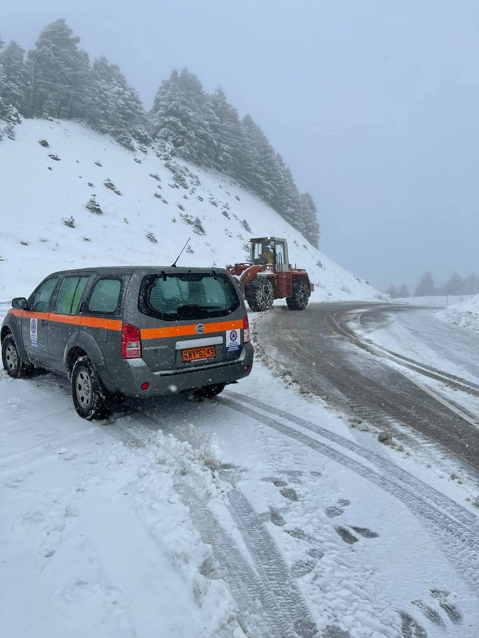 - Προτείνεται οι οδηγοί να φέρουν μαζί τους αλυσίδες, λόγω του παγετού. Επιχειρούν 35 μηχανήματα έργου.