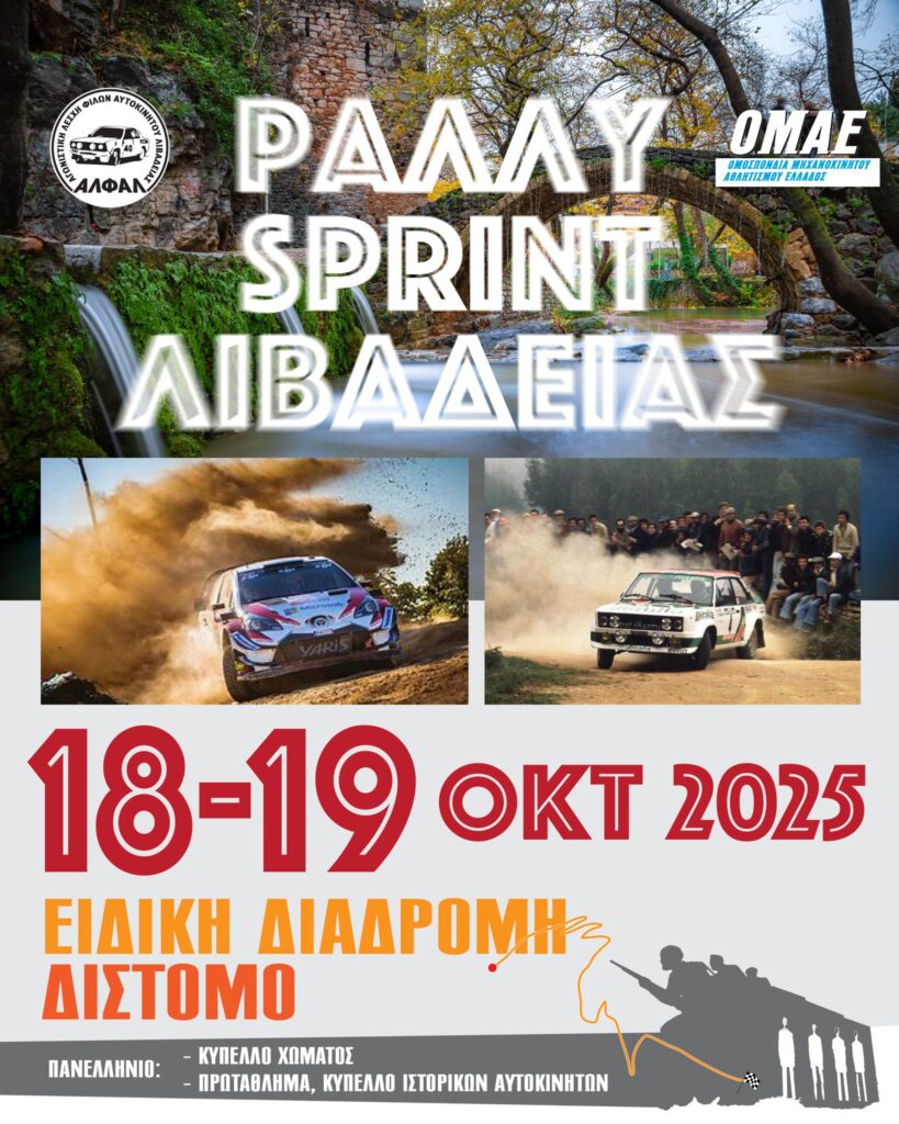 Η Α.Λ.Φ.Α. Λιβαδειάς (Αγωνιστική Λέσχη Φίλων Αυτοκινήτου Λιβαδειάς) ανακοινώνει ότι στις 18 και 19 Οκτωβρίου, θα διοργανώσει το χωμάτινο Rally Sprint Λιβαδειάς με ειδική διαδρομή το Δίστομο.