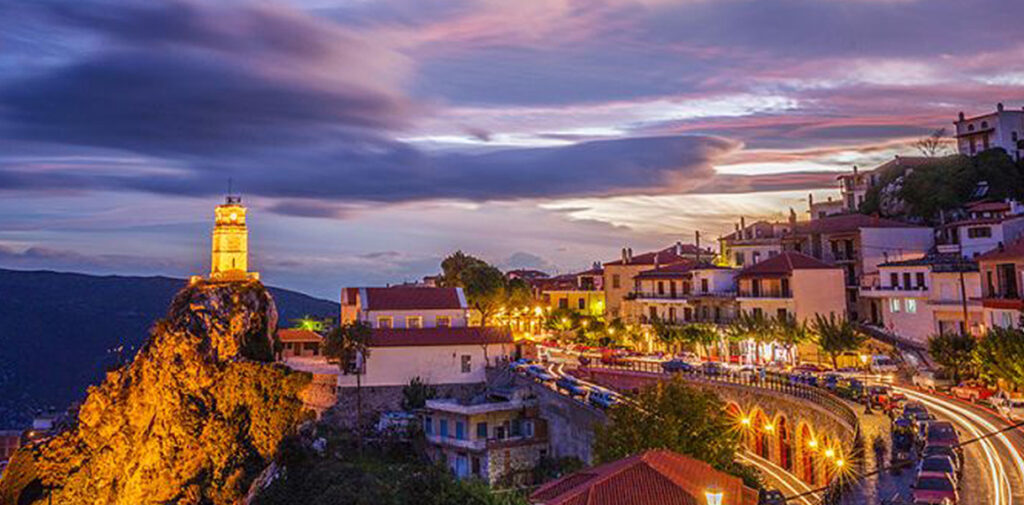 Με σημείο αναφοράς το Κεντρικό Ρολόι και με θέα από τον Άγιο Γεώργιο και τη Γέφυρα, ένα εντυπωσιακό χριστουγεννιάτικο θα φωτίσει τον ουρανό της Αράχωβας, χαρίζοντας μαγικές εικόνες και εορταστική ατμόσφαιρα.