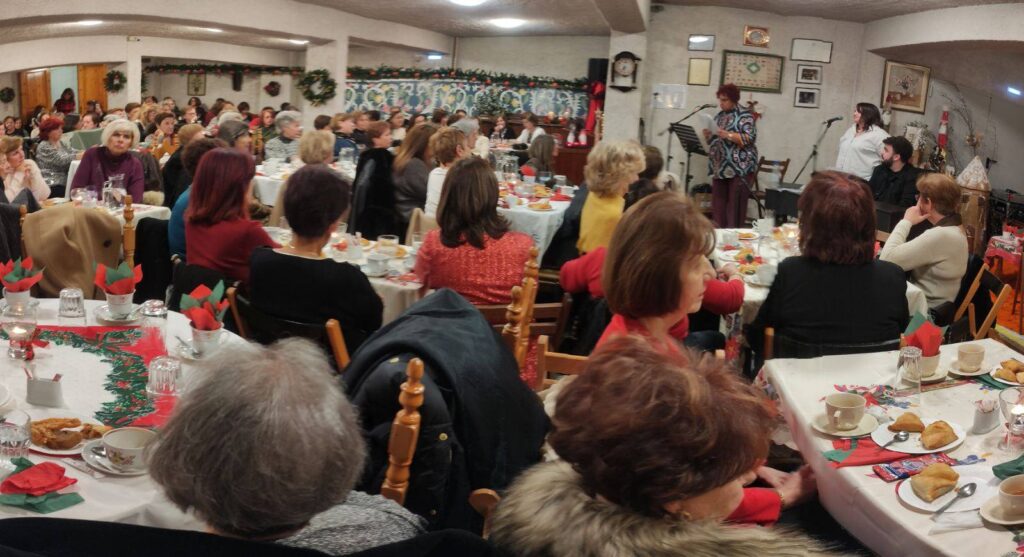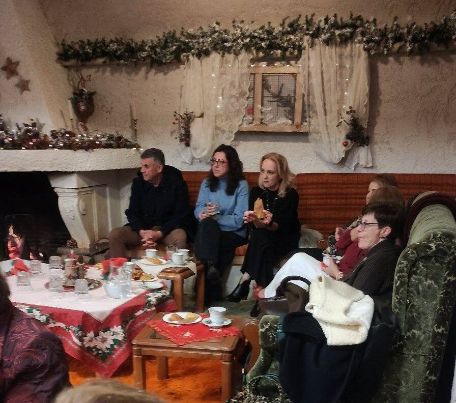 Οι προσκεκλημένοι γευτήκαν ζεστό τσάι, χριστουγεννιάτικα εδέσματα και αντάλλαξαν ευχές με την πρόεδρο Χριστίνα Αγγέλου και τις κυρίες του Ιδρύματος.