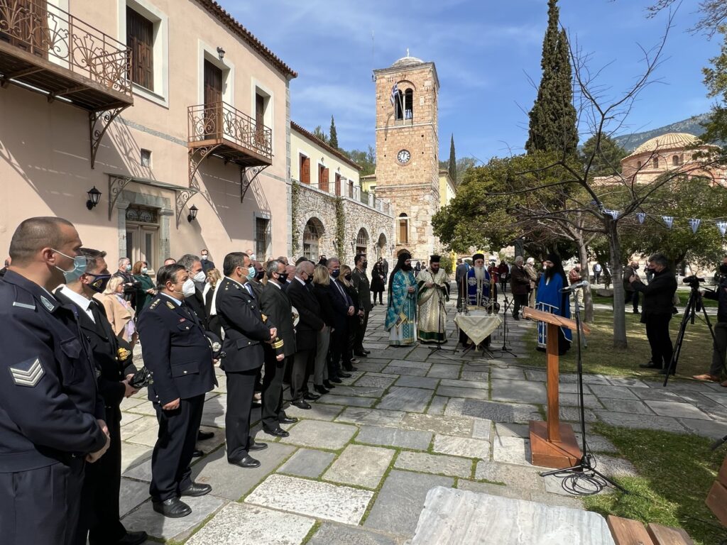 Αναφερόμενος στην κήρυξη της Επανάστασης στη Ρούμελη, που έγινε την 27η Μαρτίου 1821 στη Μονή του Οσίου Λουκά από το Δεσπότη Σαλώνων Ησαΐα, τόνισε ότι μαζί με τον Αθανάσιο Διάκο, κι όλους τους ήρωες κι αγωνιστές έφεραν τη δάδα της επανάστασης και τη φλόγα της λευτεριάς σε όλη την Ελλάδα. Ενώ, για την προσφορά της Μονής του Οσίου Λουκά στην Επανάσταση, σύμφωνα με τον ιστορικό Γ. Κρέμος, υπήρξε “εστία και ορμητήριο του Αγώνα”.