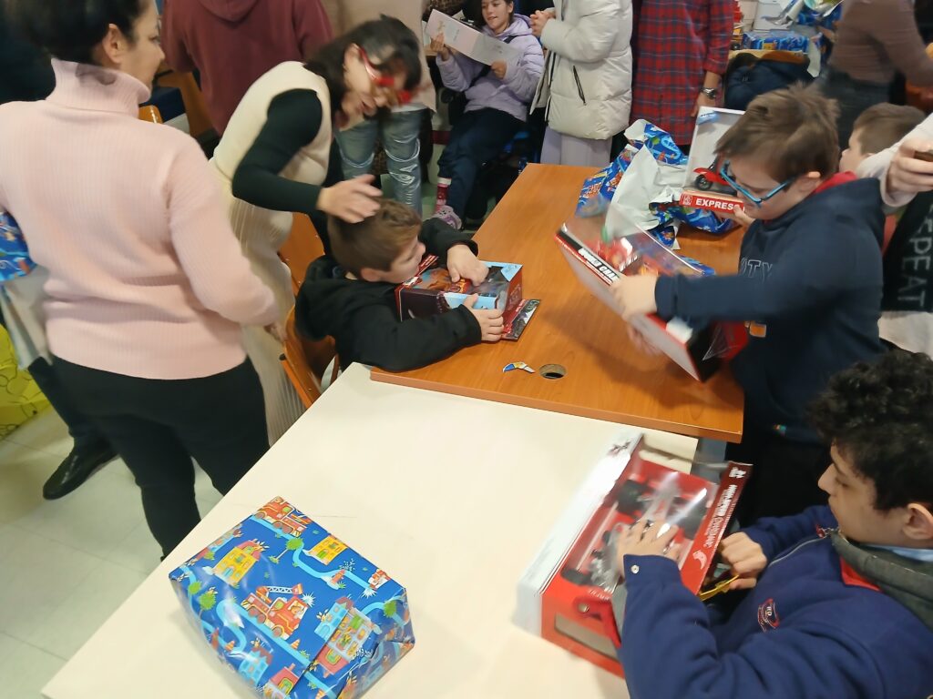 Θερμή ήταν η υποδοχή από δασκάλους και μαθητές στη στολισμένη αίθουσα όπου διαμοιράστηκαν παιχνίδια σε αγόρια και κορίτσια χαρίζοντας χαμόγελα και ενθουσιασμό.