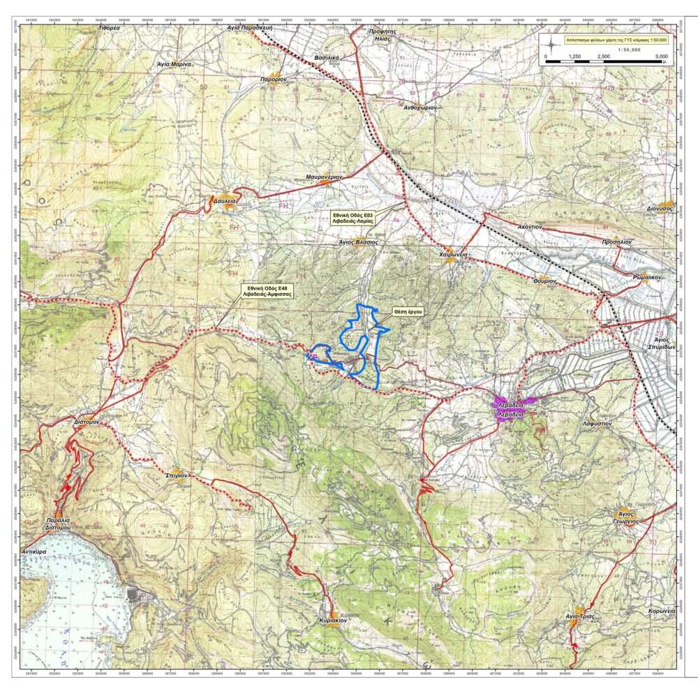 Σύμφωνα με την ΜΠΕ, η εγκατάσταση χωροθετείται σε μια έκταση άνω των 3εκατ. τ.μ, που απέχει μισό χιλιόμετρο από τον οικισμό Τσουκαλάδων, 2,5χλ. από τον Άγιο Βλάσιο, 3,5χλμ. από τη Χαιρώνεια και 4,2χλμ. από τη Λιβαδειά.