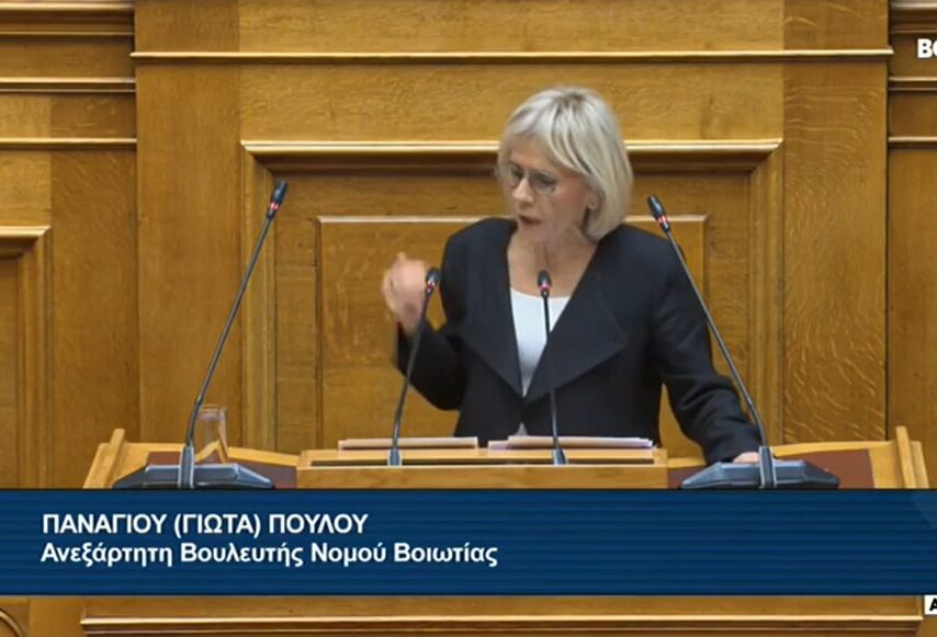 Από το βήμα του Κοινοβουλίου, η βουλευτής Βοιωτίας Γιώτα Πούλου κατήγγειλε την “αδιαφανή εμπλοκή της Ελλάδας στον παράνομο πόλεμο στη Μέση Ανατολή”.