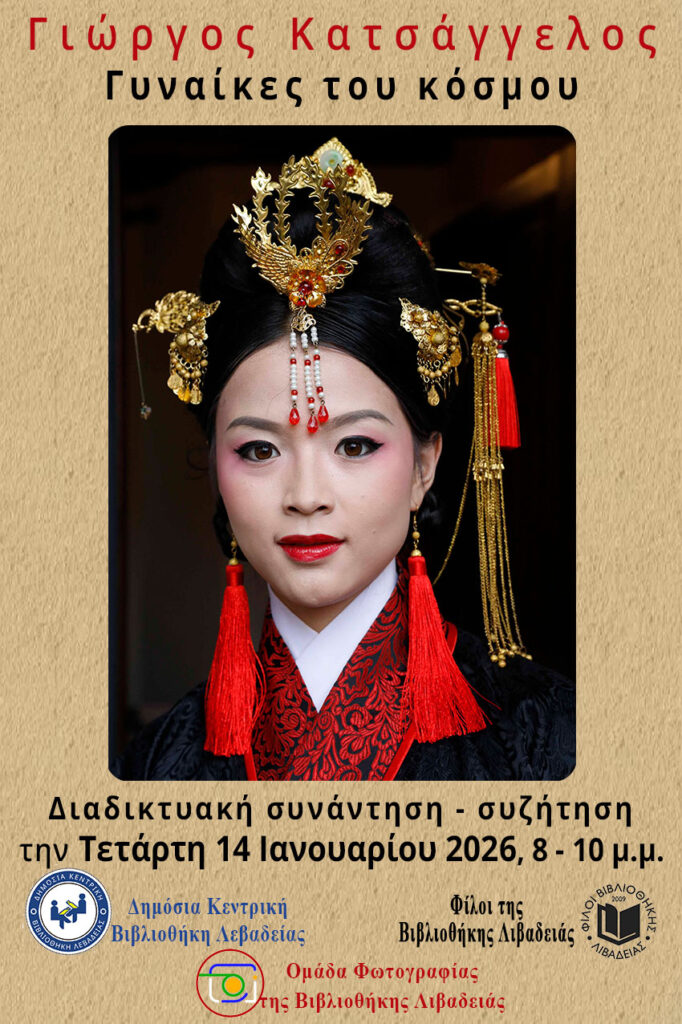 Η Δημόσια Κεντρική Βιβλιοθήκη Λεβαδείας, ο σύλλογος Φίλοι της Βιβλιοθήκης Λιβαδειάς και η Ομάδα Φωτογραφίας της Βιβλιοθήκης Λιβαδειάς, προσκαλούν στην παρουσίαση των φωτογραφιών της έκθεσης του Γιώργου Κατσάγγελου με τίτλο: «Γυναίκες του κόσμου».