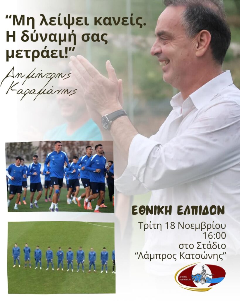 «Ελάτε όλοι να στηρίξουμε την Εθνική, τους νέους μας ποδοσφαιριστές και να δημιουργήσουμε μια ατμόσφαιρα νίκης! Μη λείψει κανείς. H δύναμή σας μετράει!», σημειώνει ο Δήμαρχος.