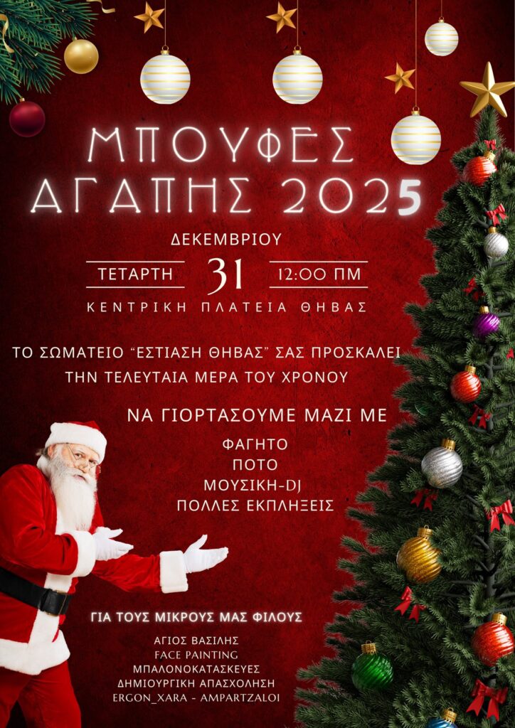 Στον “μπουφέ της αγάπης” καλεί το Σωματείο “Εστίαση Θήβας” για να αποχαιρετίσει το 2025.