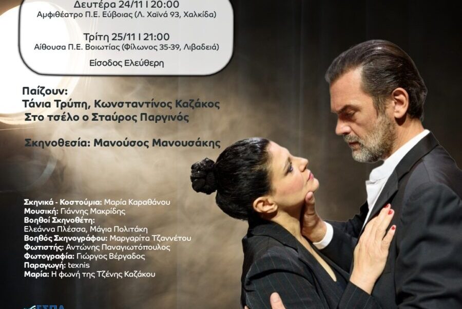 Πρωταγωνιστούν οι καταξιωμένοι ηθοποιοί Τάνια Τρύπη και Κωνσταντίνος Καζάκος. Η σκηνοθετική ματιά του Μανούσου Μανουσάκη αναδεικνύει τη δύναμη και το βάθος του έργου, το οποίο εξερευνά τις ανθρώπινες σχέσεις, τα όρια της αγάπης και τις συγκρούσεις ανάμεσα στο πάθος και τη λογική. Η παράσταση είναι κατάλληλη για άτομα άνω των 18 ετών.