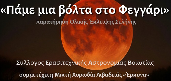 Αφορμή, ένα από τα πιο θεαματικά ουράνια φαινόμενα των τελευταίων ετών, η Ολική Έκλειψη Σελήνης που θα συμβεί την Κυριακή και η οποία θα είναι ορατή από την περιοχή μας.